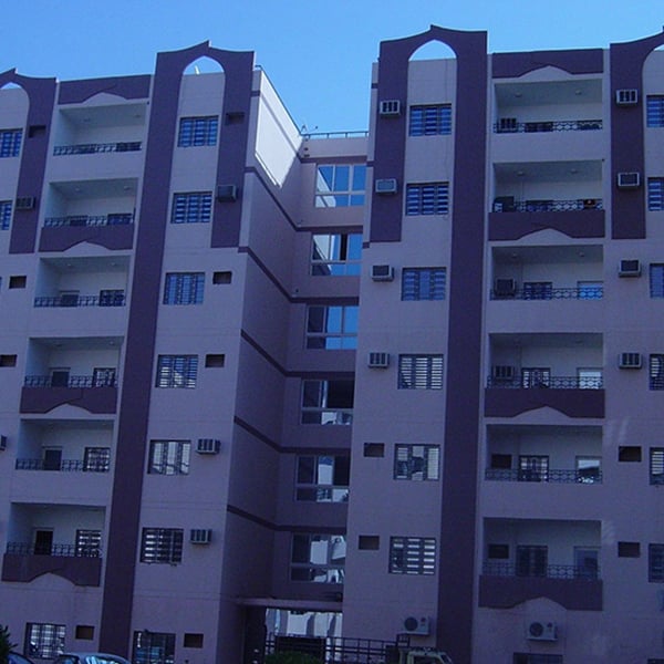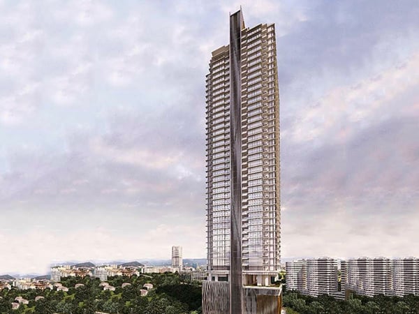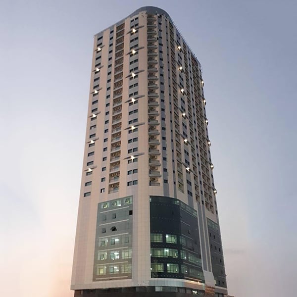 A mixed-use building consisting of apartments, a shopping mall, and a 5-star hotel. The building has 45 floors above ground and reaches a height of 171 meters. The hotel is currently not open.